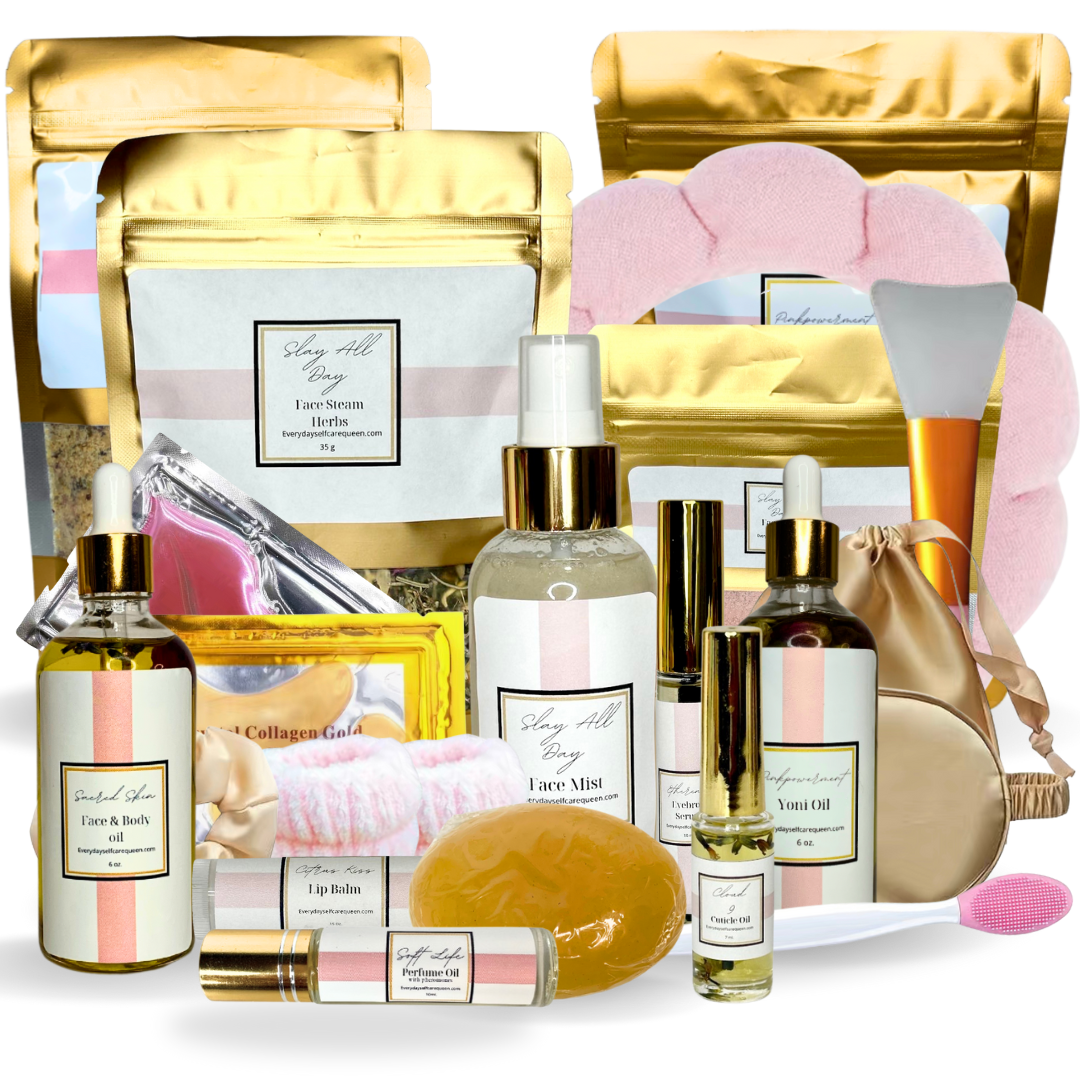 Keep your skin glowing with the Sacred Skin Face & Body Oil and cleansing Sacred Skin Face Soap, while our Ethereal Eyebrow Serum enhances your natural beauty. Elevate self-care with the PinkPowerment Yoni Care Trio and celebrate togetherness with ESQ’s VIP Spa Gift Set. This bundle is your key to relaxation, radiance, and romance!